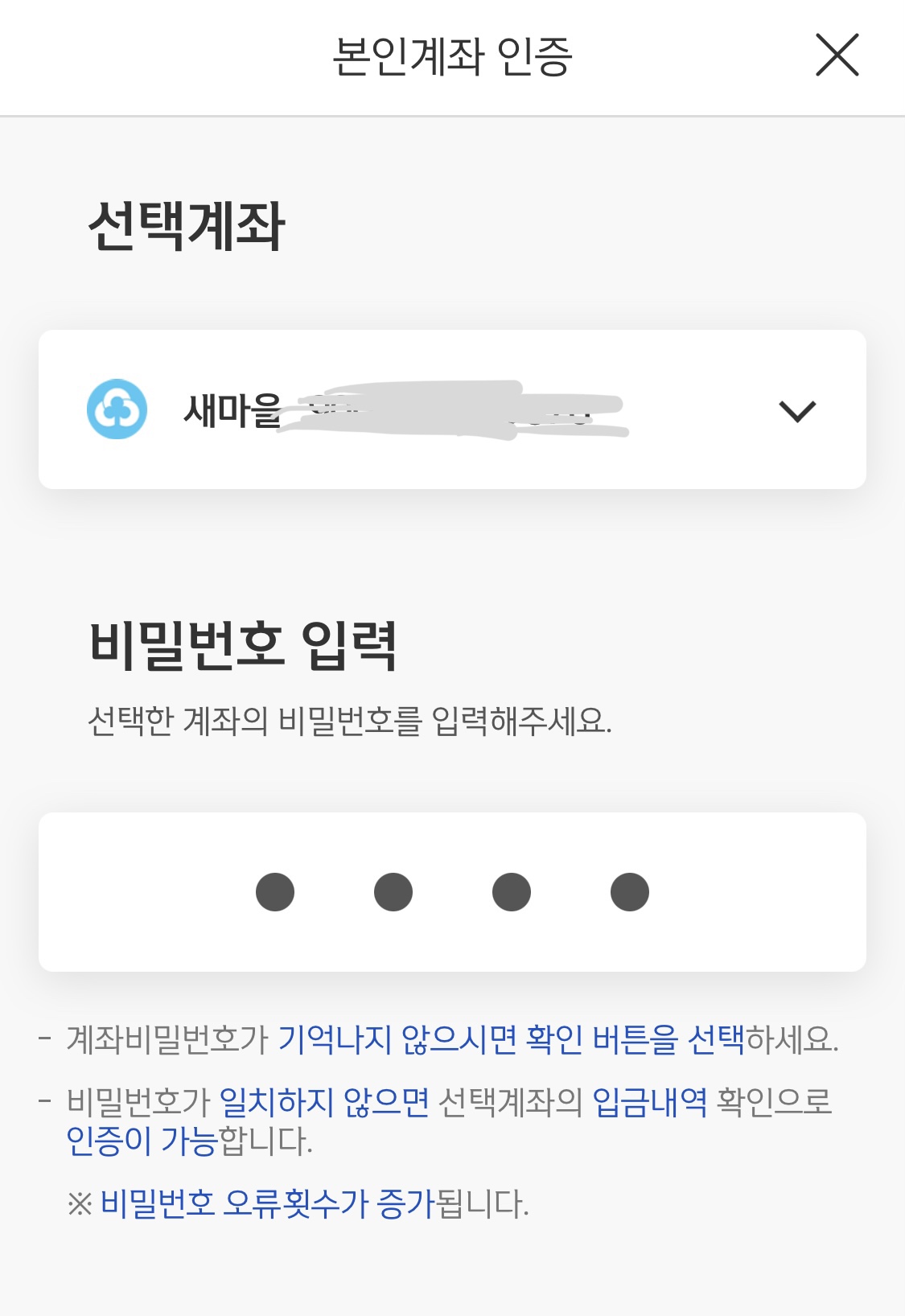 비밀번호 입력해서 본인 계좌인지 확인합니다
