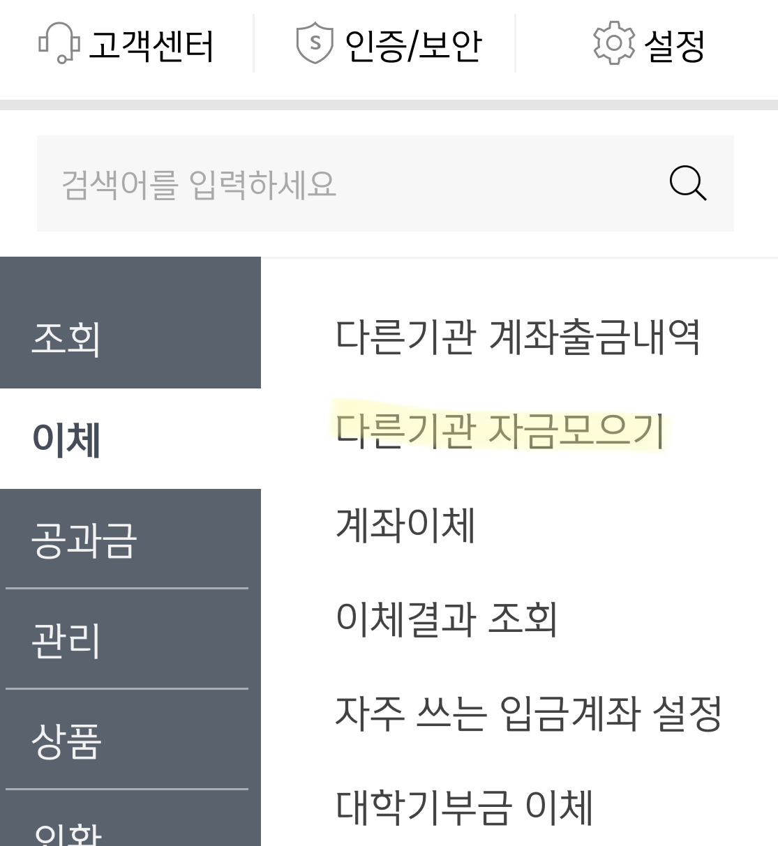 다른기관자금모으기 눌러줍니다