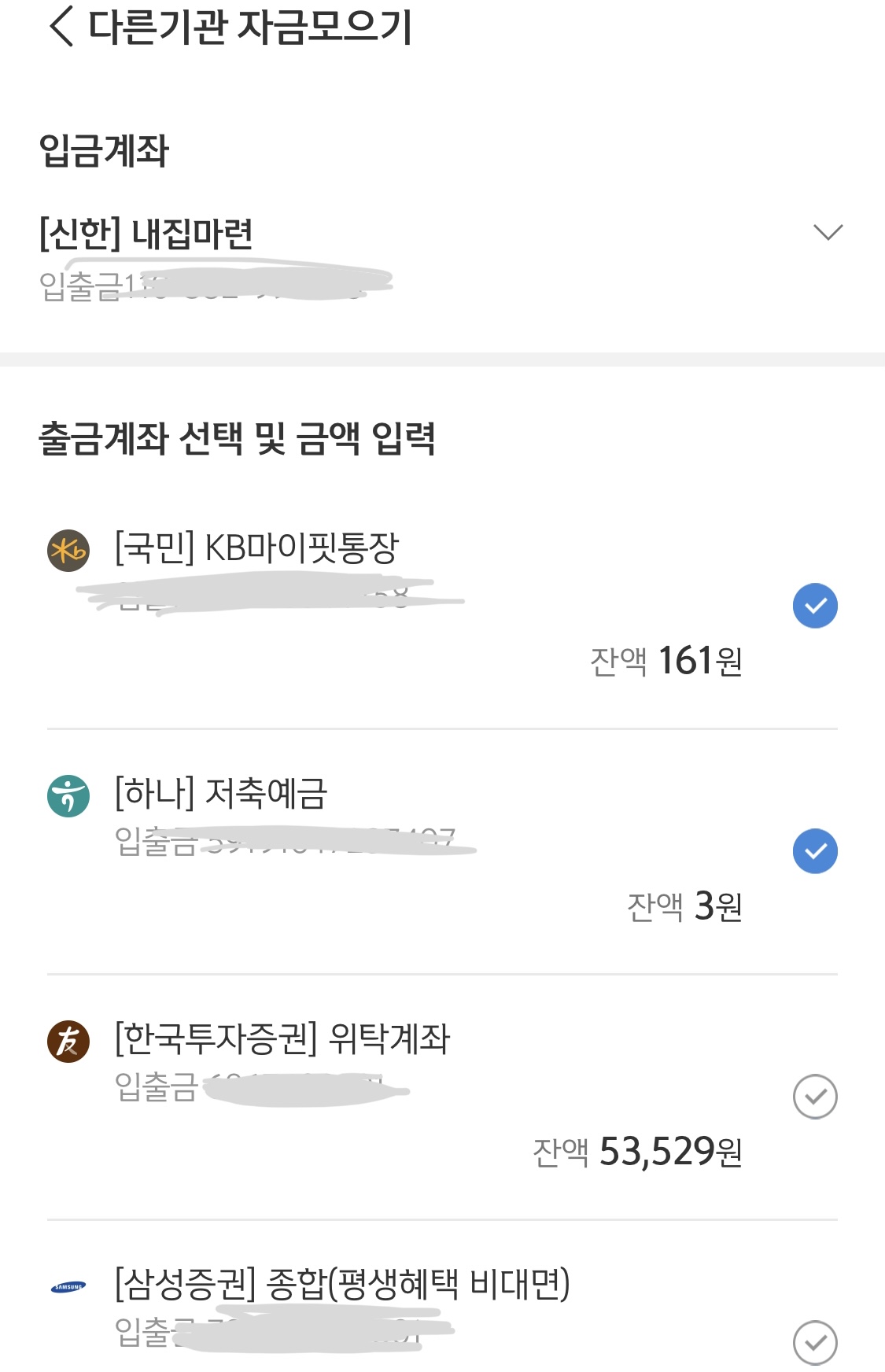 신한은행 - 이체 - 다른기관자금모으기