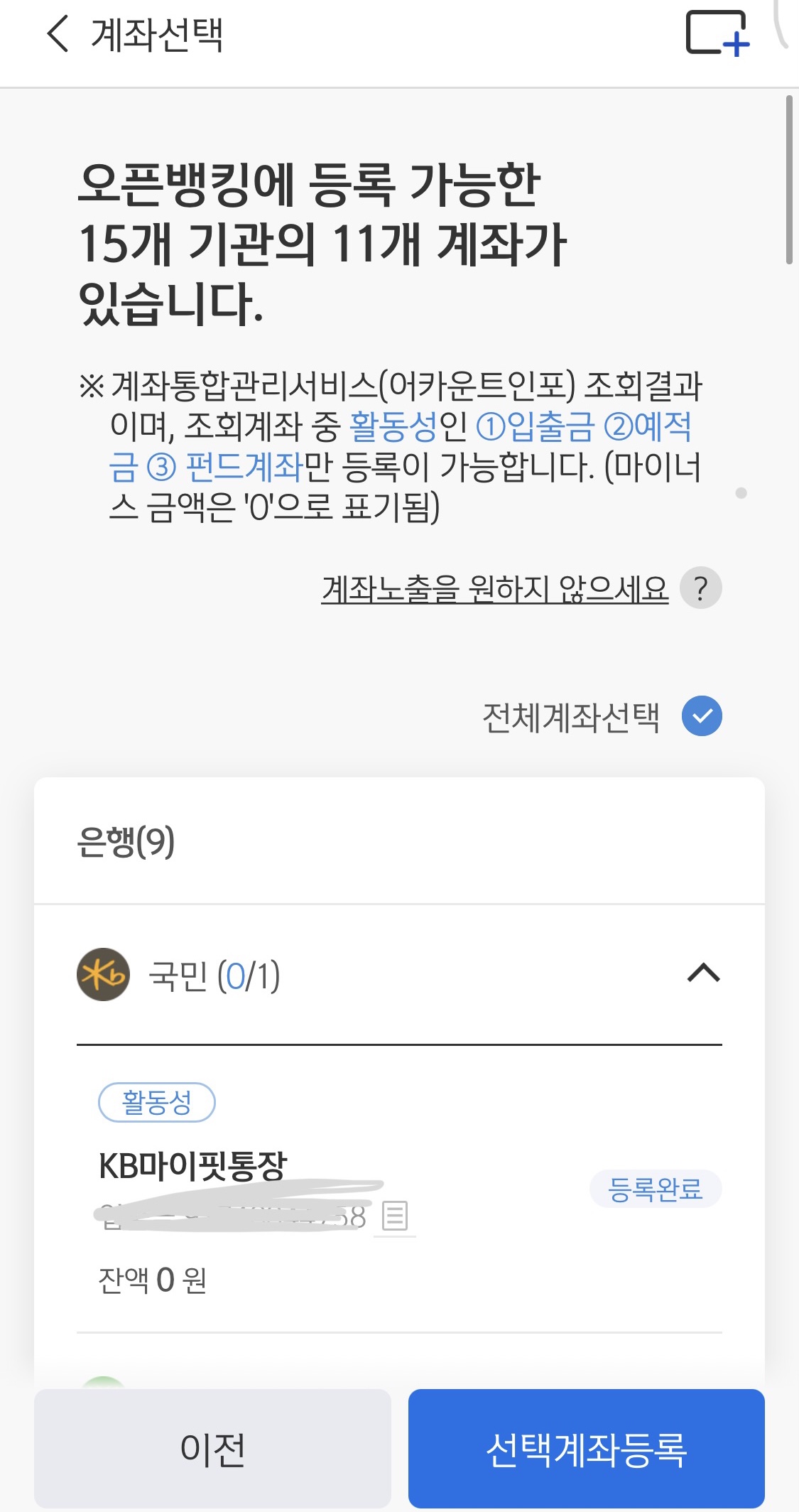 모든 계좌 오픈뱅킹 등록 불가
